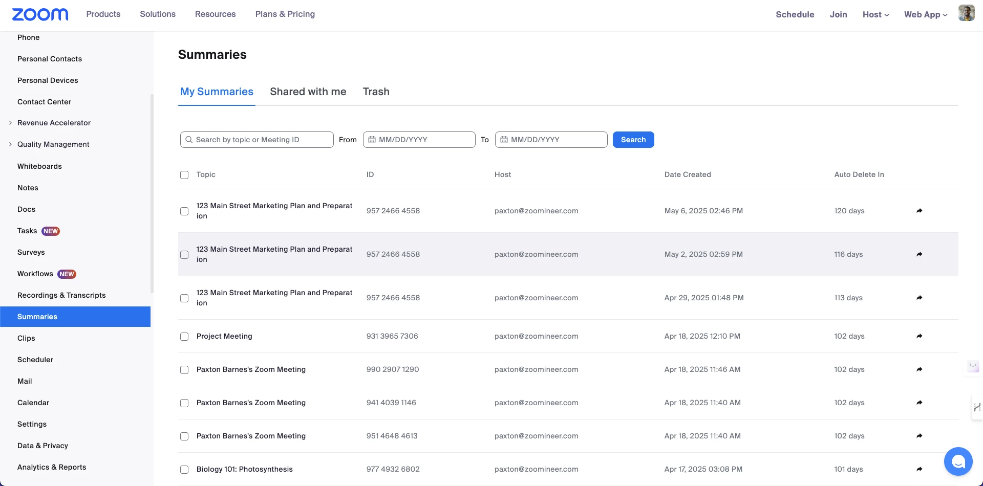 As well as receiving the email, does Zoom proactively pop up and prompt for historical calls on the account or is the only method of access then to look at the call history and go into the chat to find the summary.