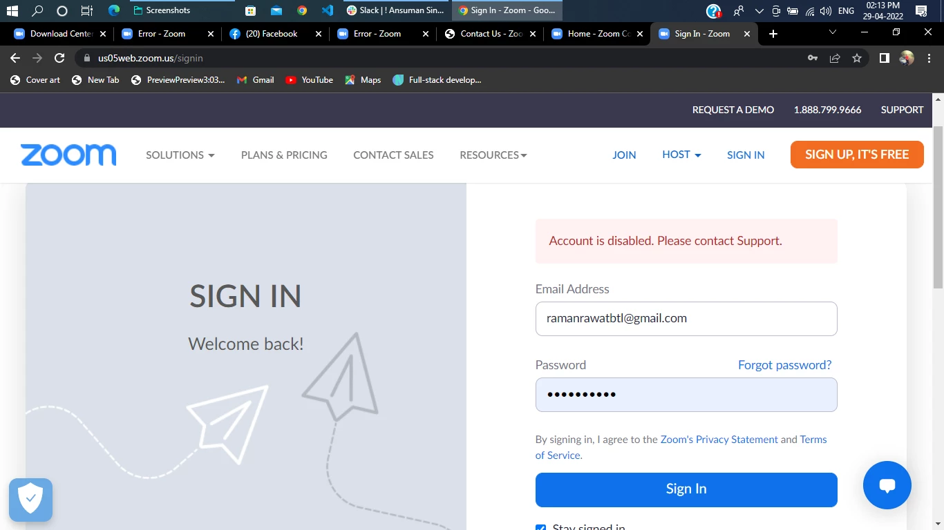 Account is disabled. Please contact Support.