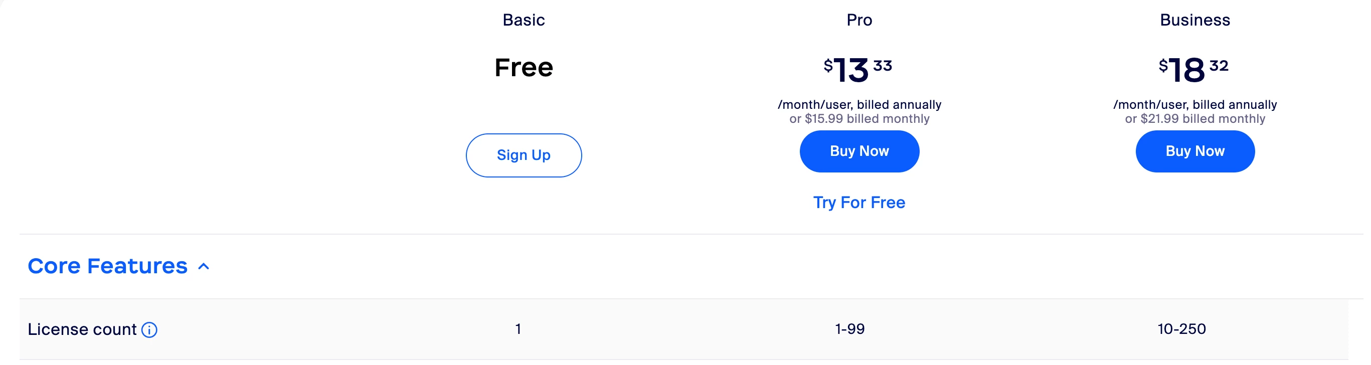 Is there a maximum or minimum amount of basic licenses in a business account?