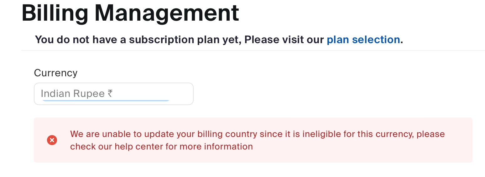 I've moved to a different country. When I try to change my billing address, I'm unable to do so. The error shown is "We are unable to update your billing country since it is ineligible for this currency" and I'm unable to change the currency as that is disabled.