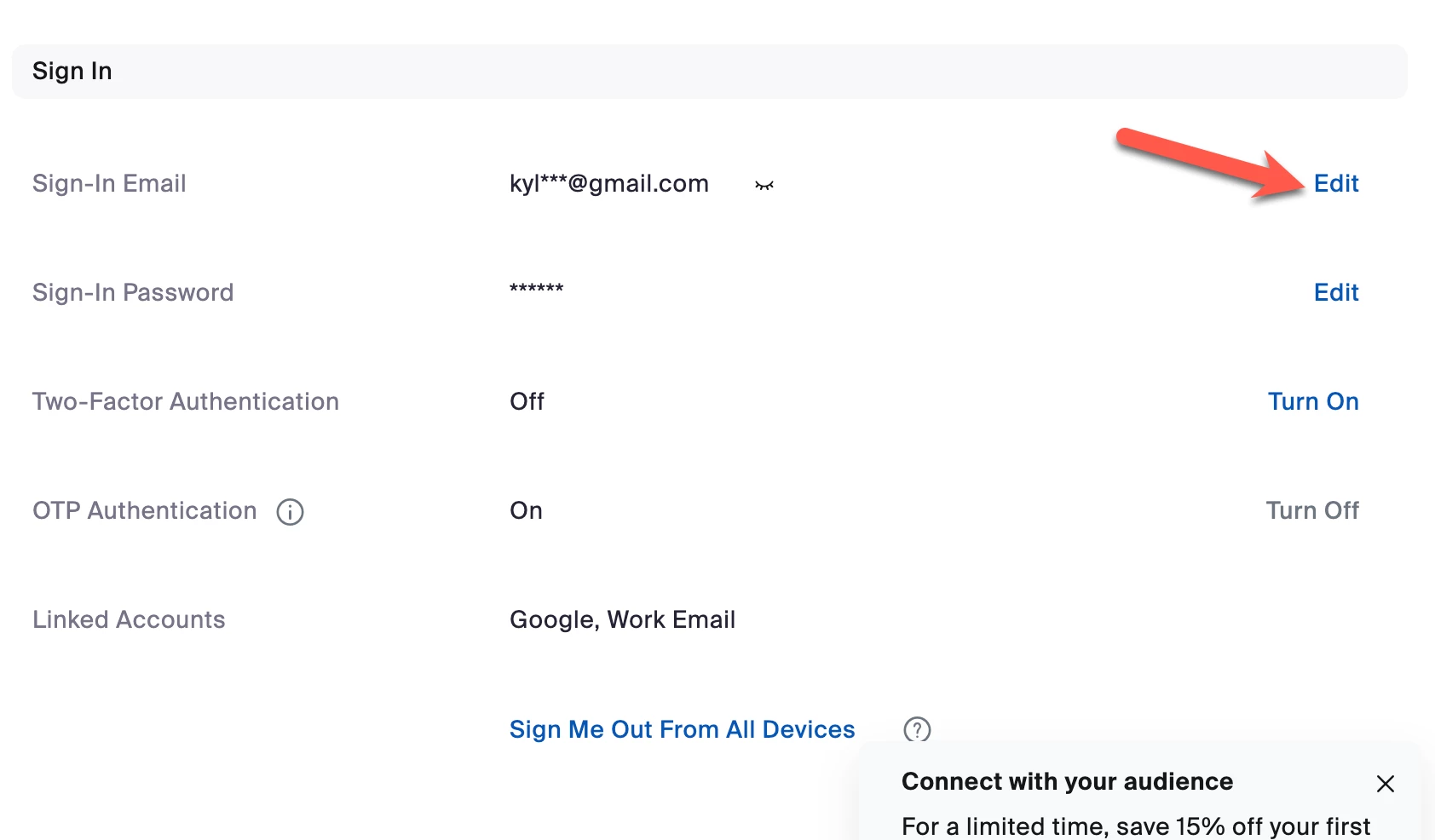 In the support articles it states to click on edit under sign in. There is no edit option.