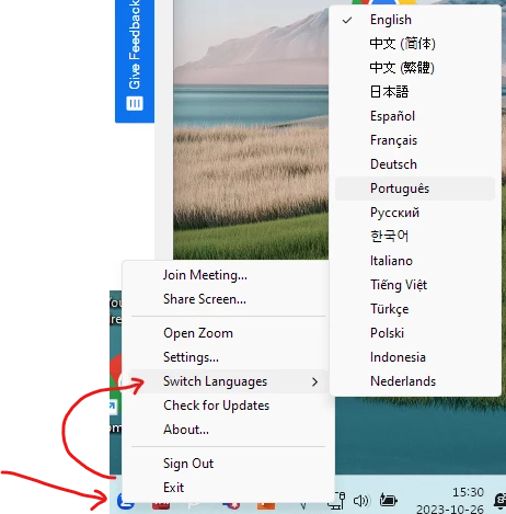 I am using the "Zoom" application in English. I can't find the language change option.