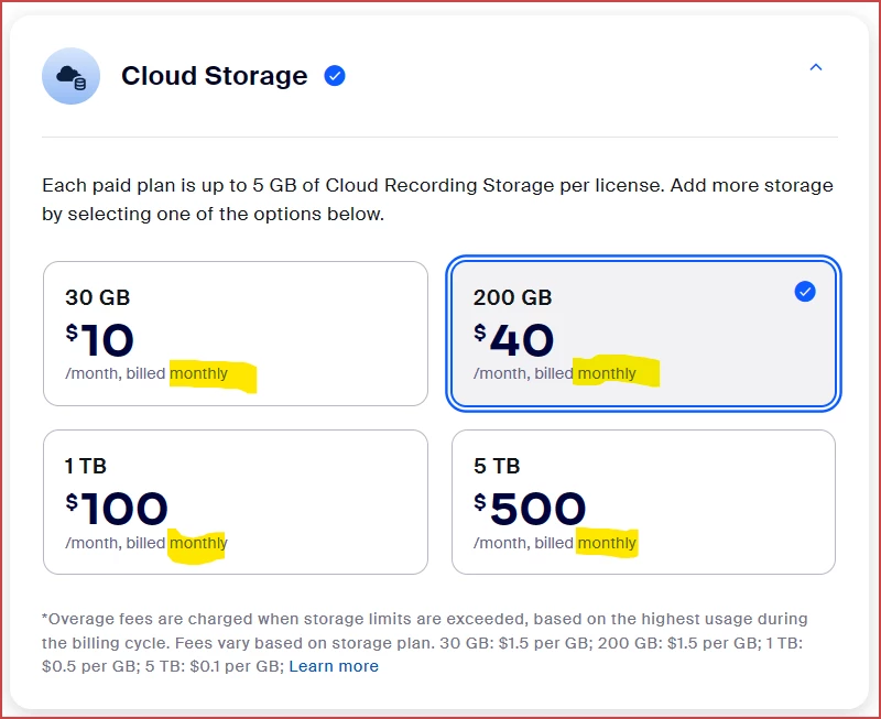 cloud storage charge