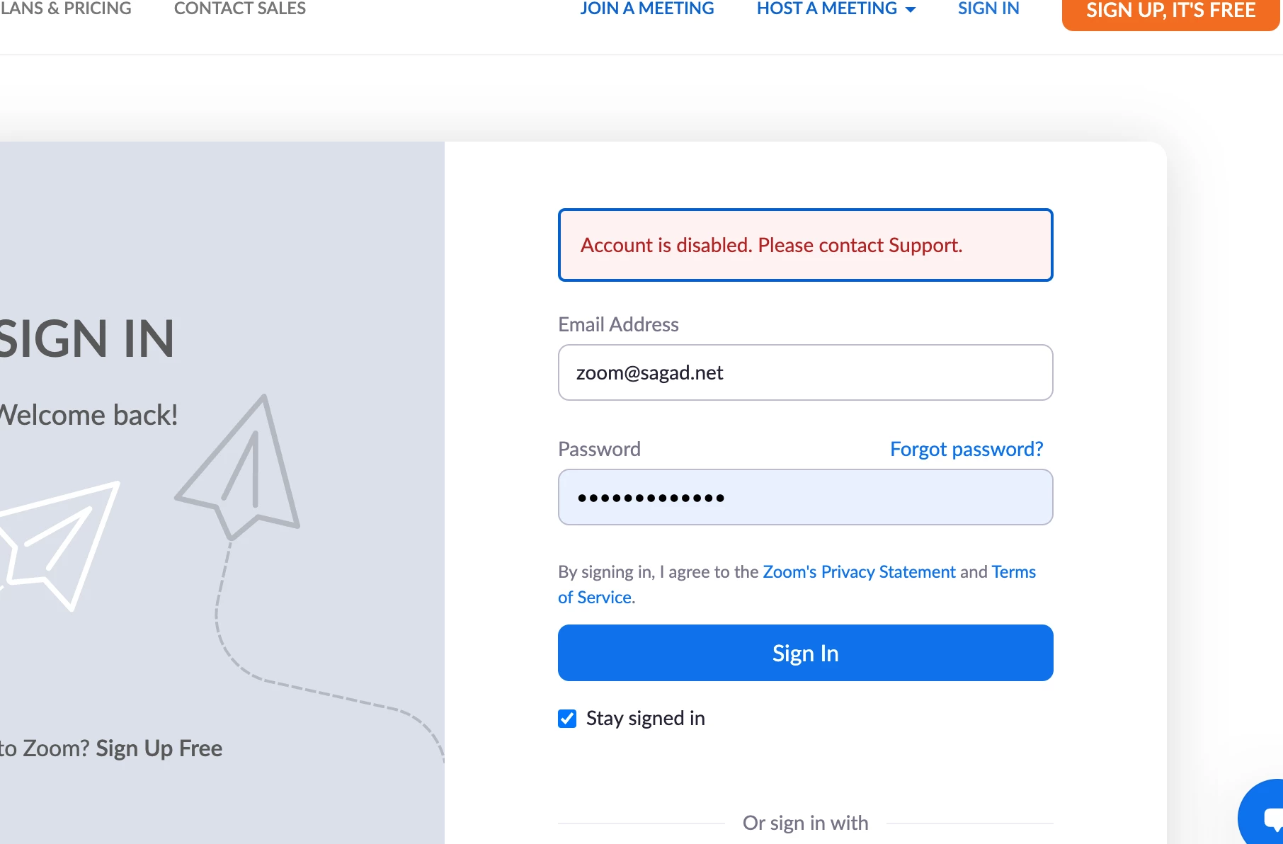 If you're the owner of the account, were you prompted with any specific error code message? Have you tried resetting your Zoom credentials?
