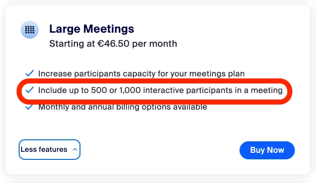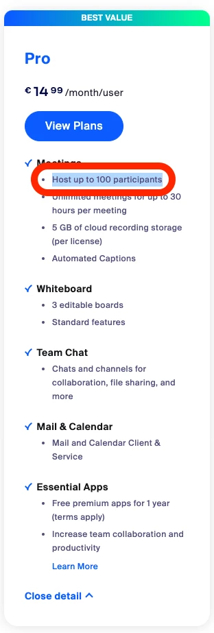 You can see the following options at https://zoom.us/pricing