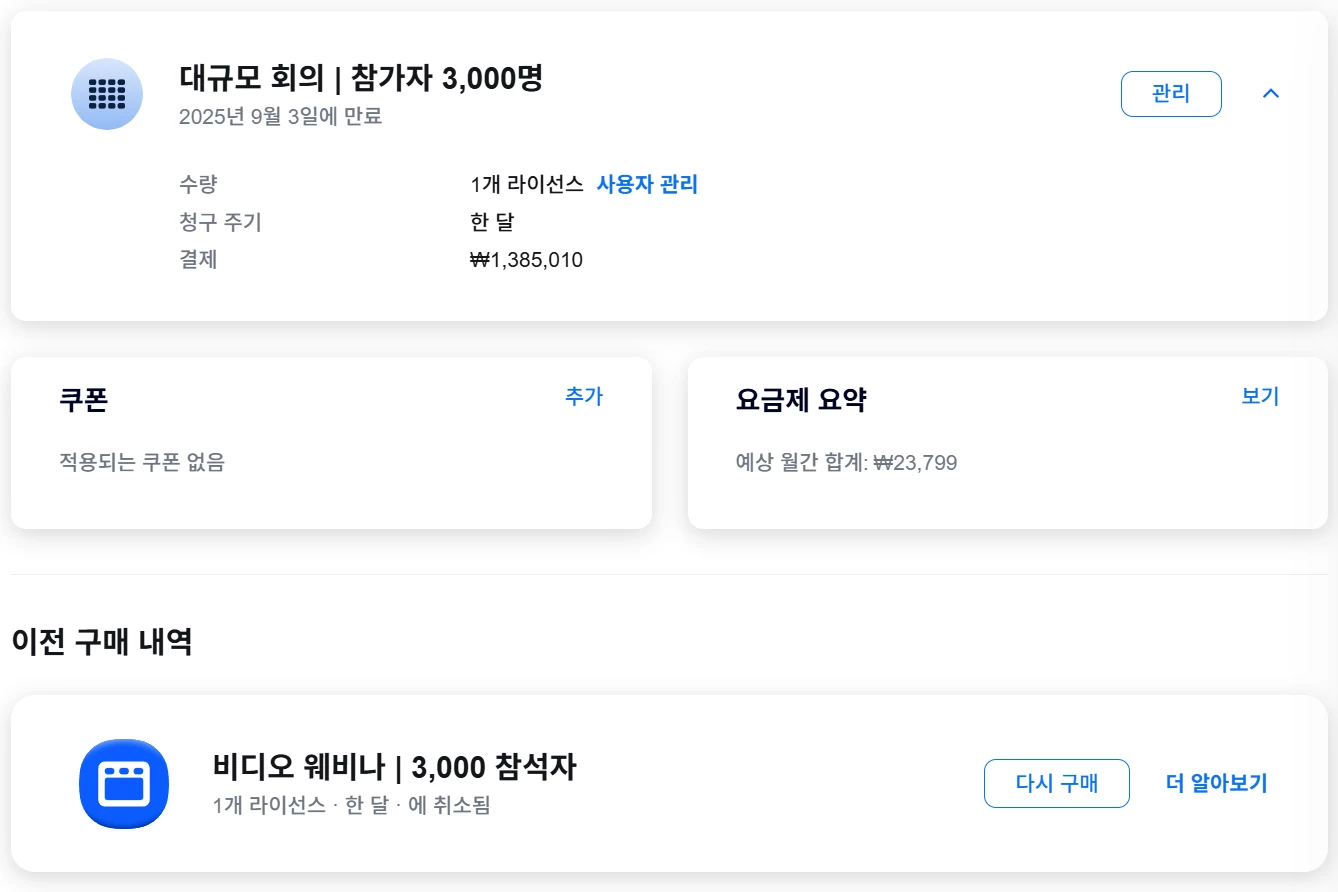 Upon review, I see that you have already received a refund for the Large Meeting 3000 license. If you have further questions, I suggest that you reply to the support ticket that is currently assigned to our support team.