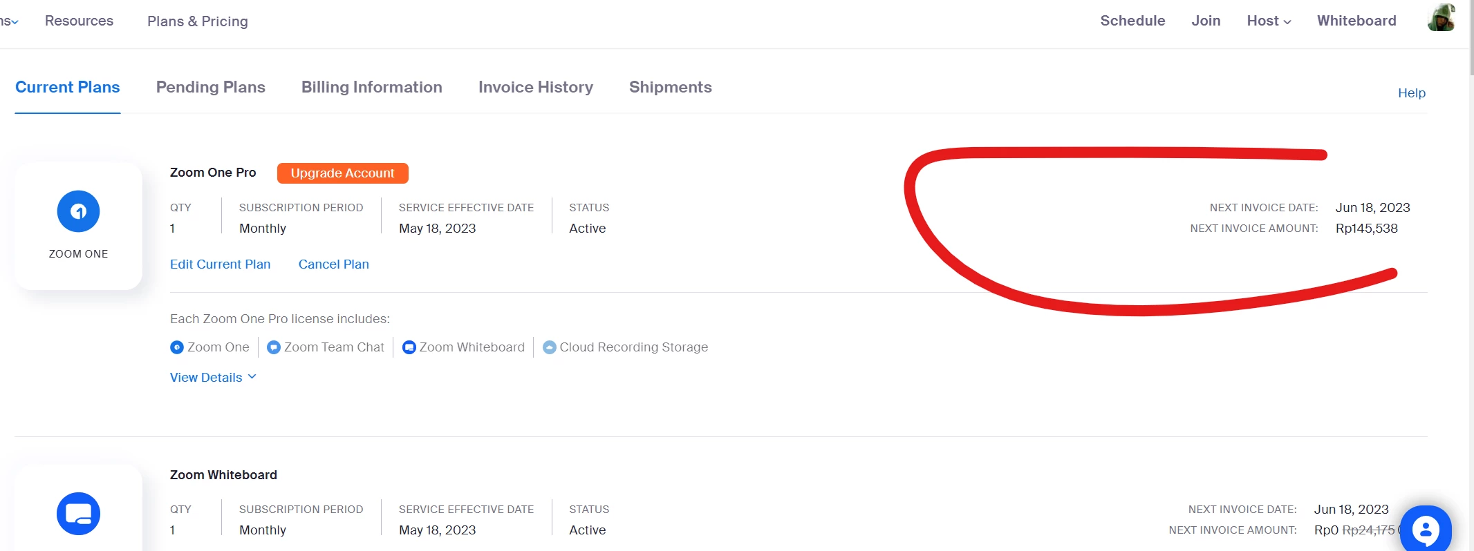 but on my screen, it still shows that my next invoice is 18 June 23 which is 6 days from now.