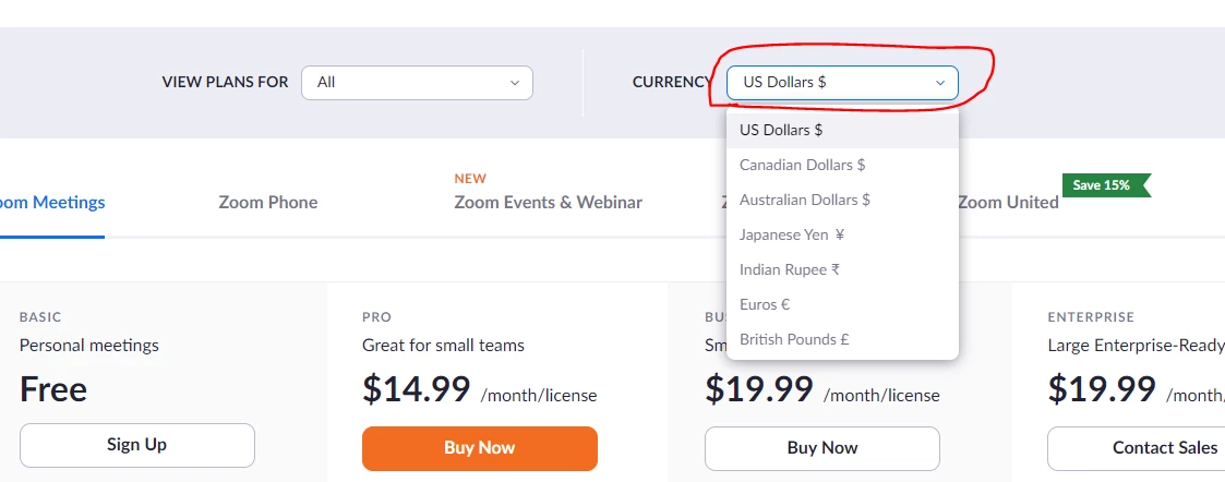 Is the price of a zoom licence the same globally? I.E I am based in the UK so Pro is £11.99, is this 13.99 euros, 16.55 in dollars etc.