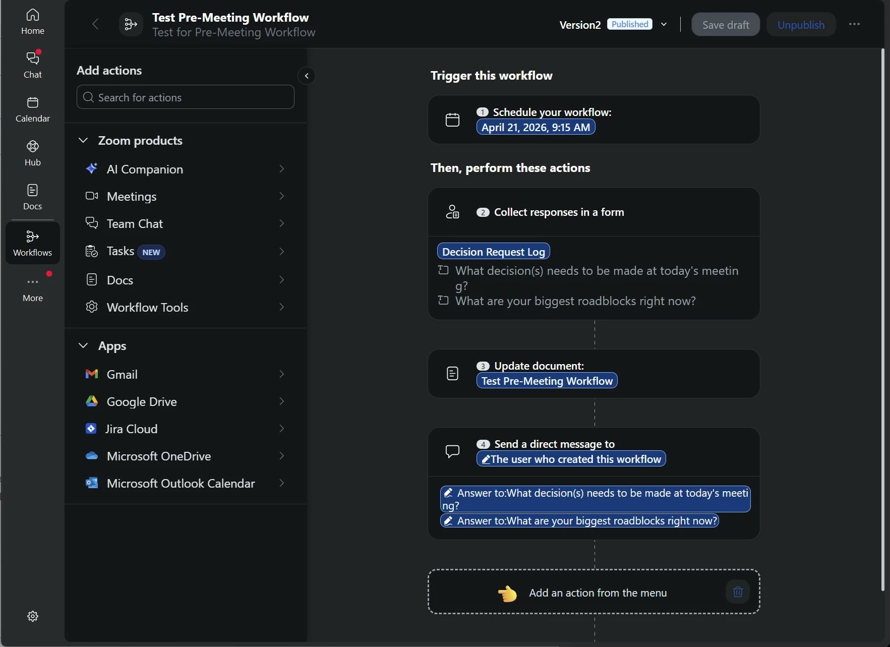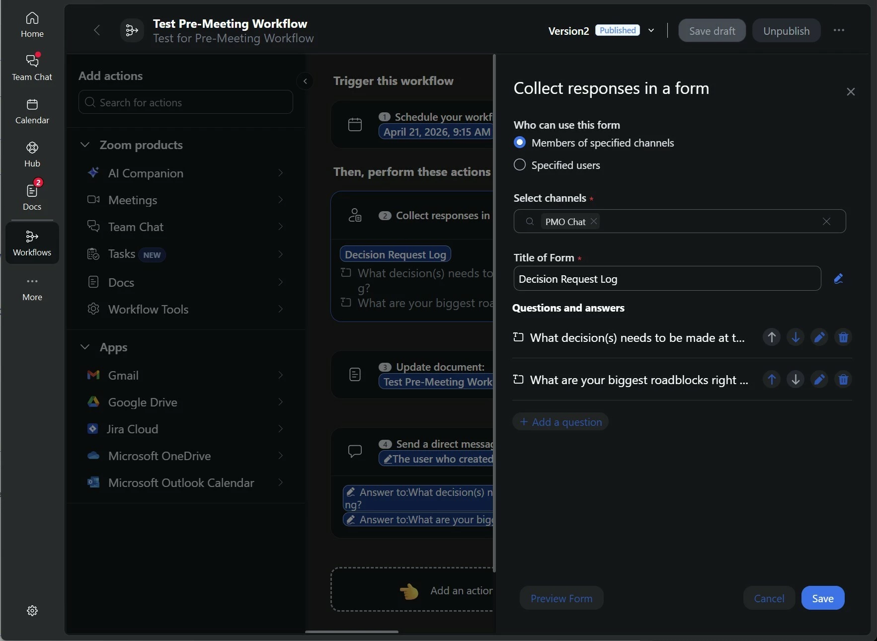 Zoom Workflow Automation | Form sent in chat closes after first submission