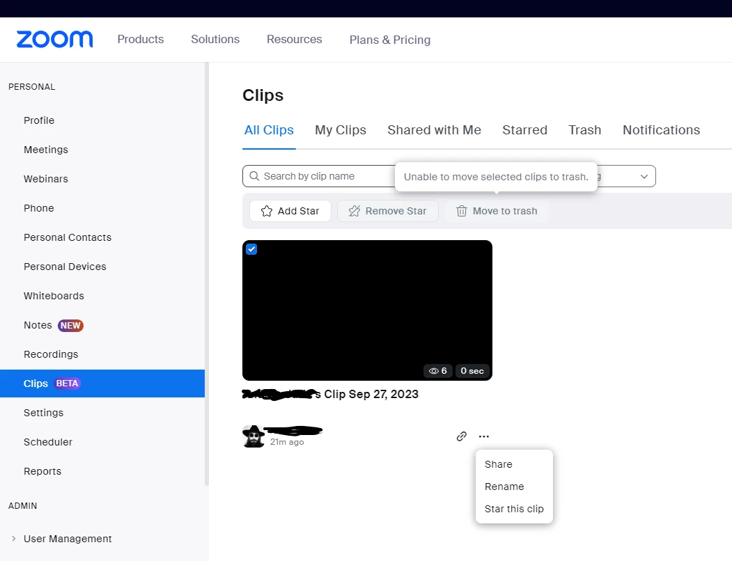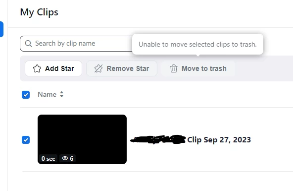 Cannot delete Zoom Clip, the button is greyed out