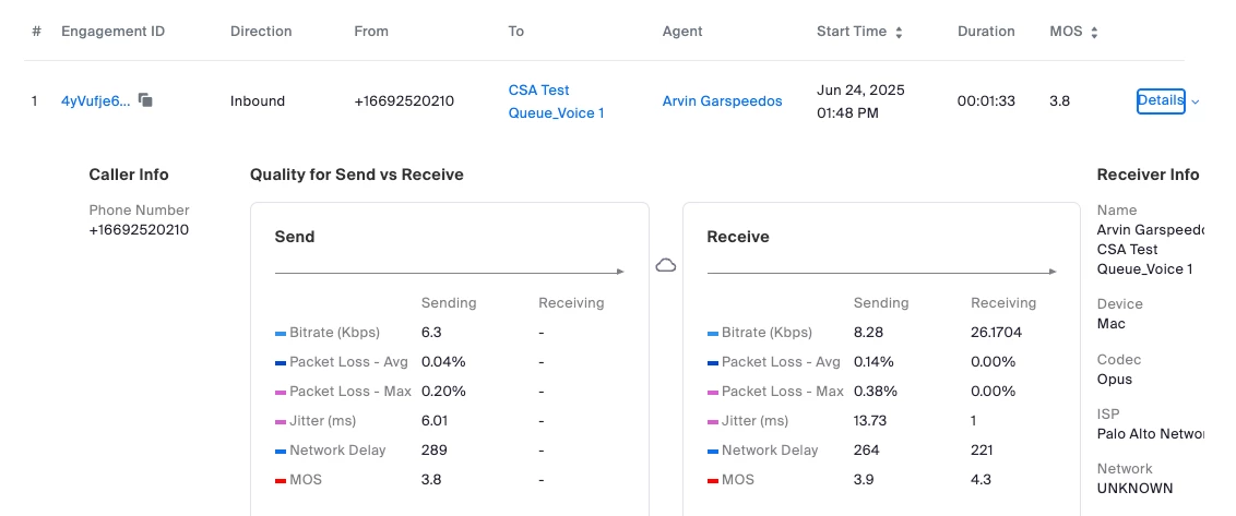 I am looking for a way to view an agents individual calls network stability during a call. Is there a way to view this without having the quality management package?