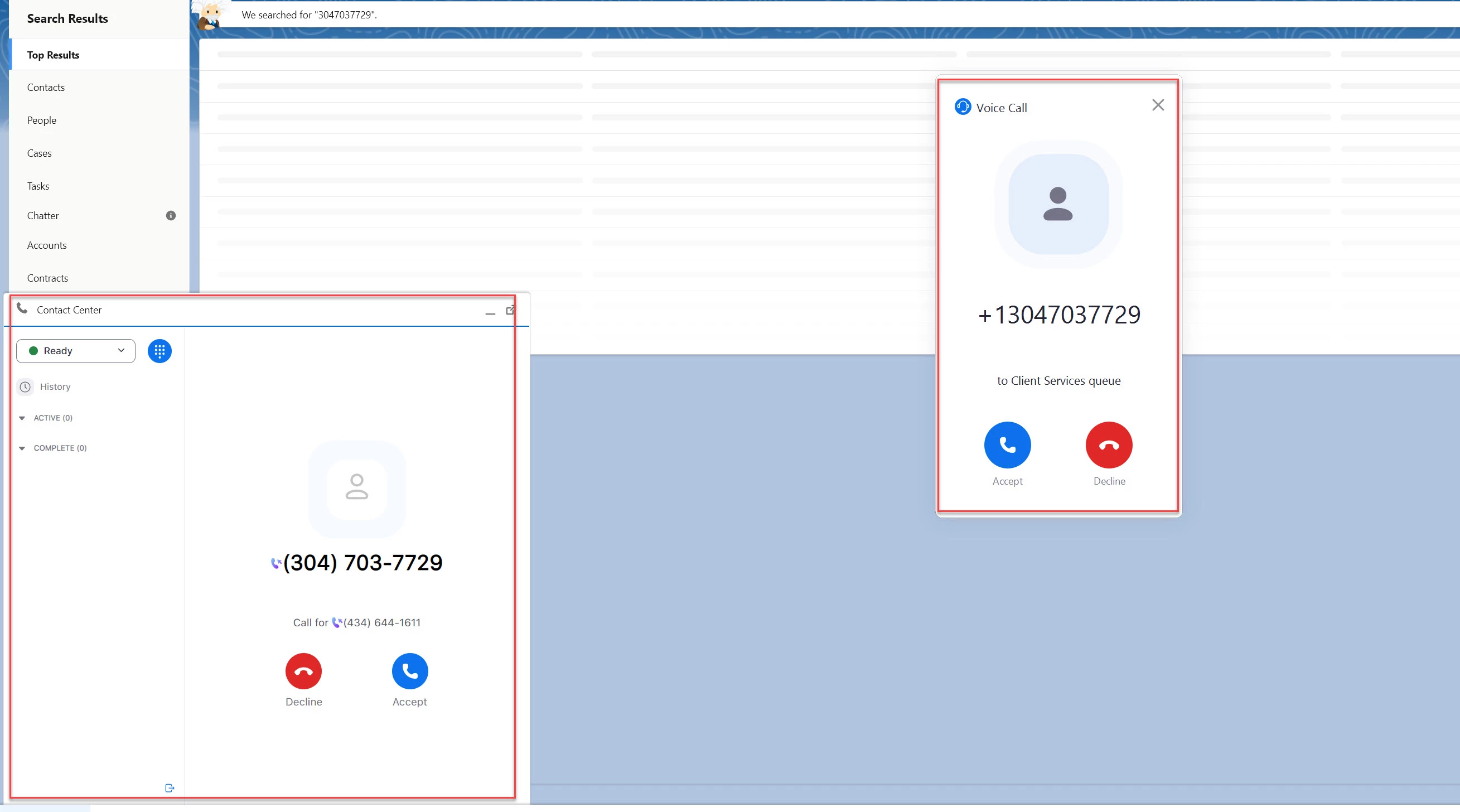 When client services is logge dinto the queue, I only want the call to pop up in the Contact Center app in Salesforce.