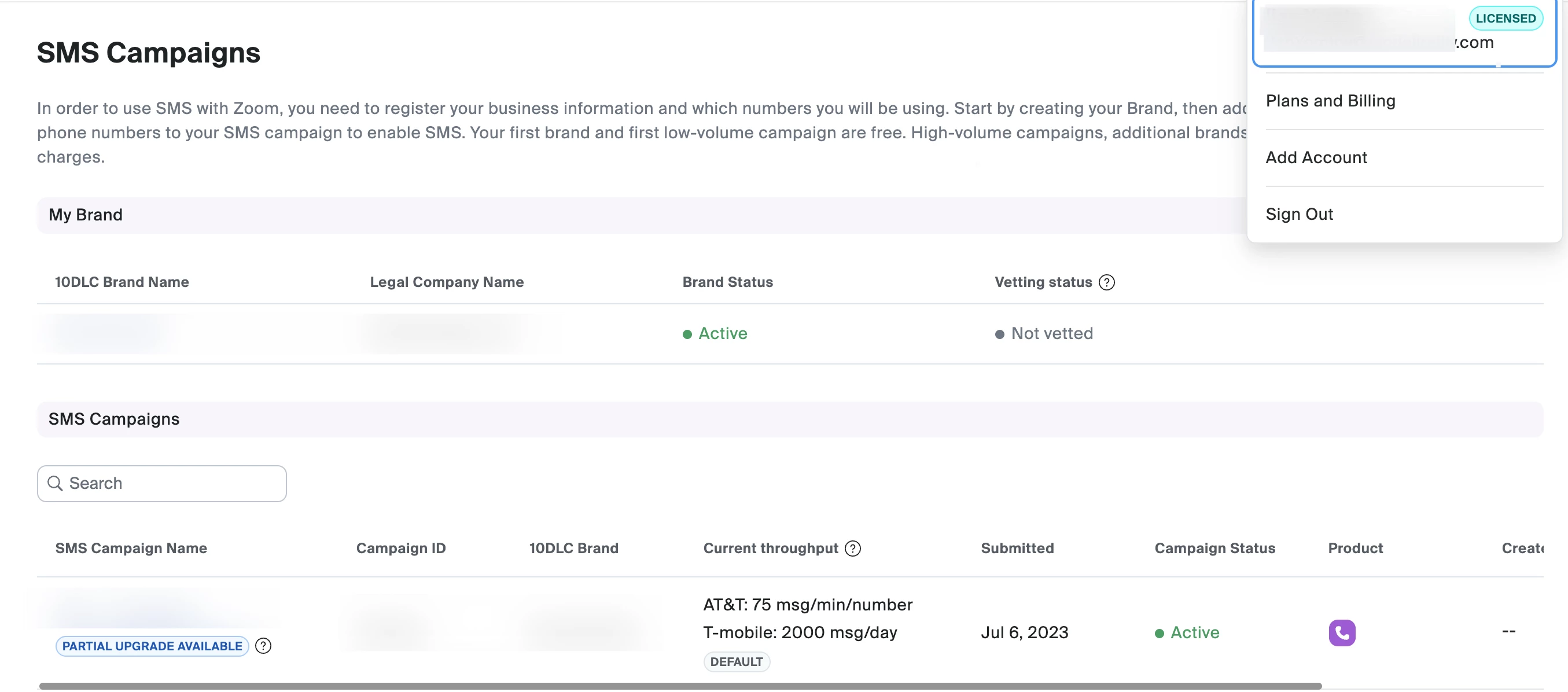 We’ve been getting a lot of questions lately around Brand Vetting and the “Partial Upgrade Available” label in Zoom SMS Campaigns — so we wanted to take a moment to clearly explain what these mean, why they matter, and how they affect your ability to use Zoom SMS.