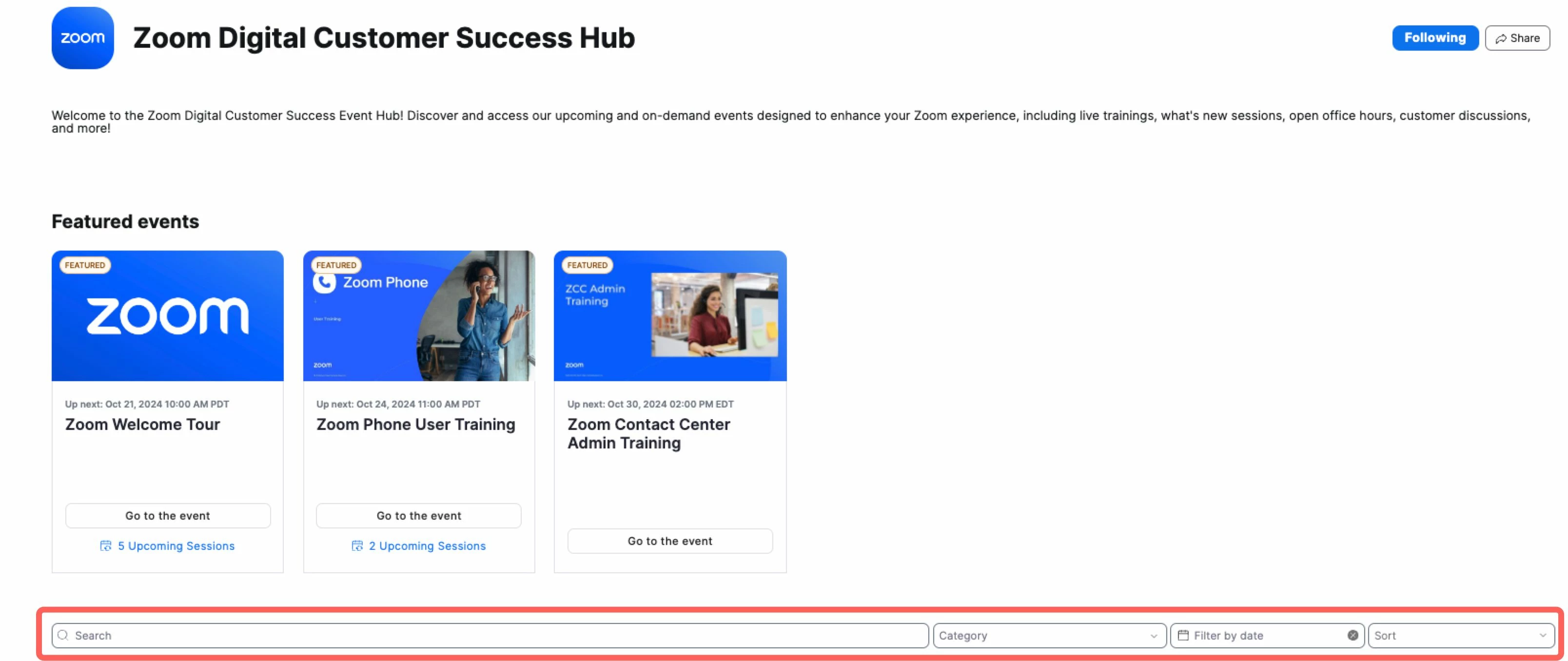 These are just a few of the many sessions available to help you navigate and utilize our products effectively. You can also use the search and filter option to narrow down and find the specific event you’re looking for! We encourage you to explore the hub, register for events, and take full advantage of this valuable resource. Together, we can elevate your Zoom experience and achieve great results!