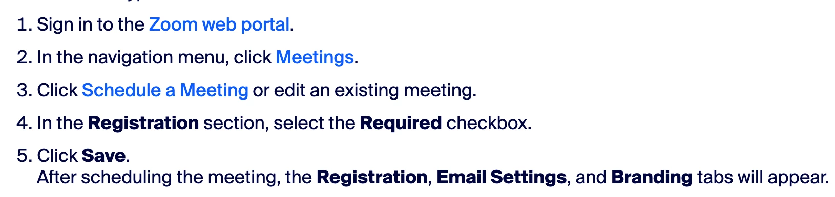 Per the 11/15/2024 article: Scheduling and customizing a meeting with registration