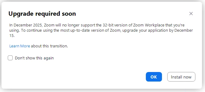 - SECONDLY, Kill Zoom Workplace 32-bit and install the 64-bit version you have already downloaded in a separate folder - 64-bit Workplace will install and then launch and you will be all set, but I recommend TWO more steps.