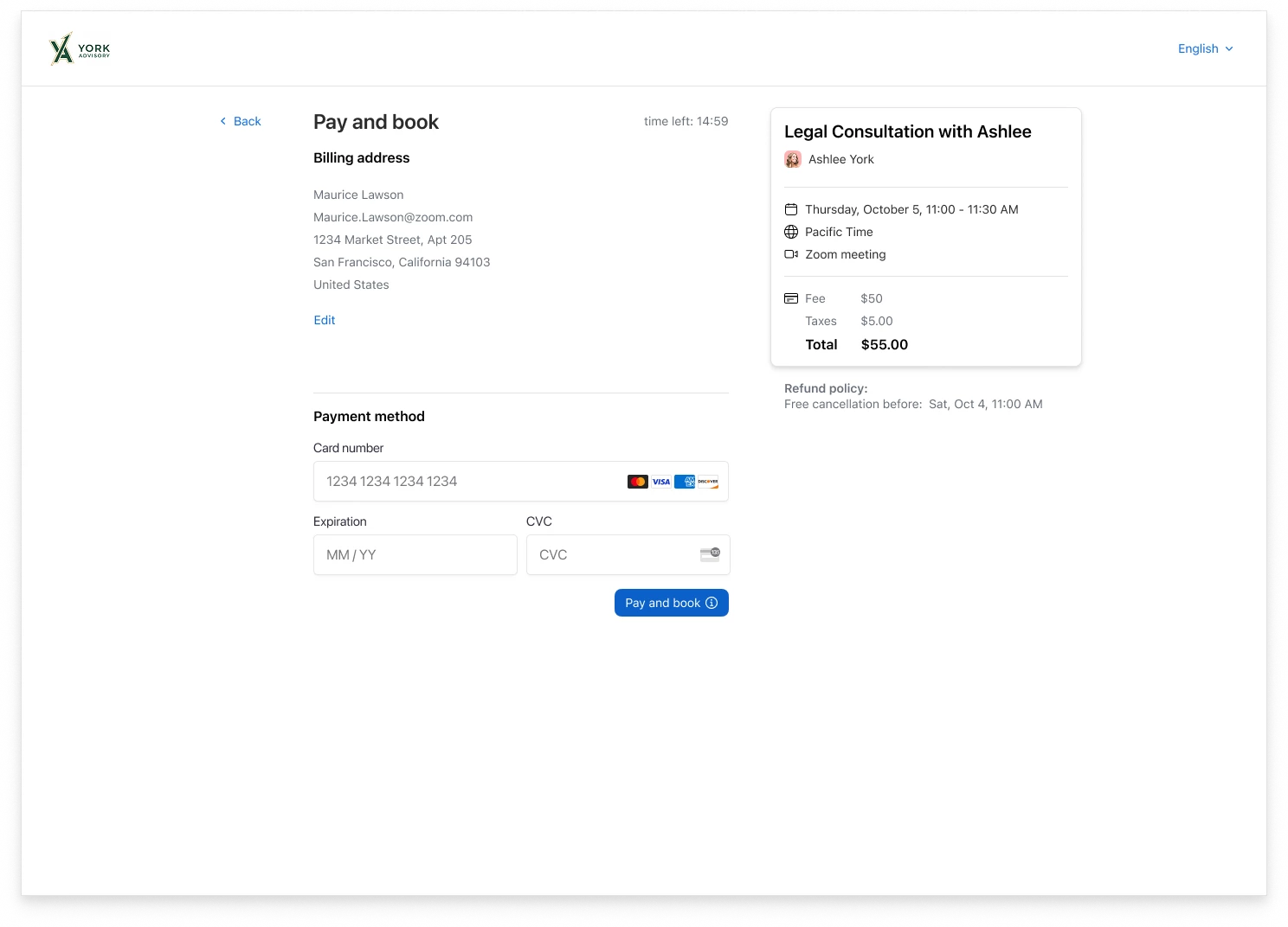 With Zoom Scheduler, clients see your availability, select a time, and pay upfront in a single seamless flow using Stripe.
