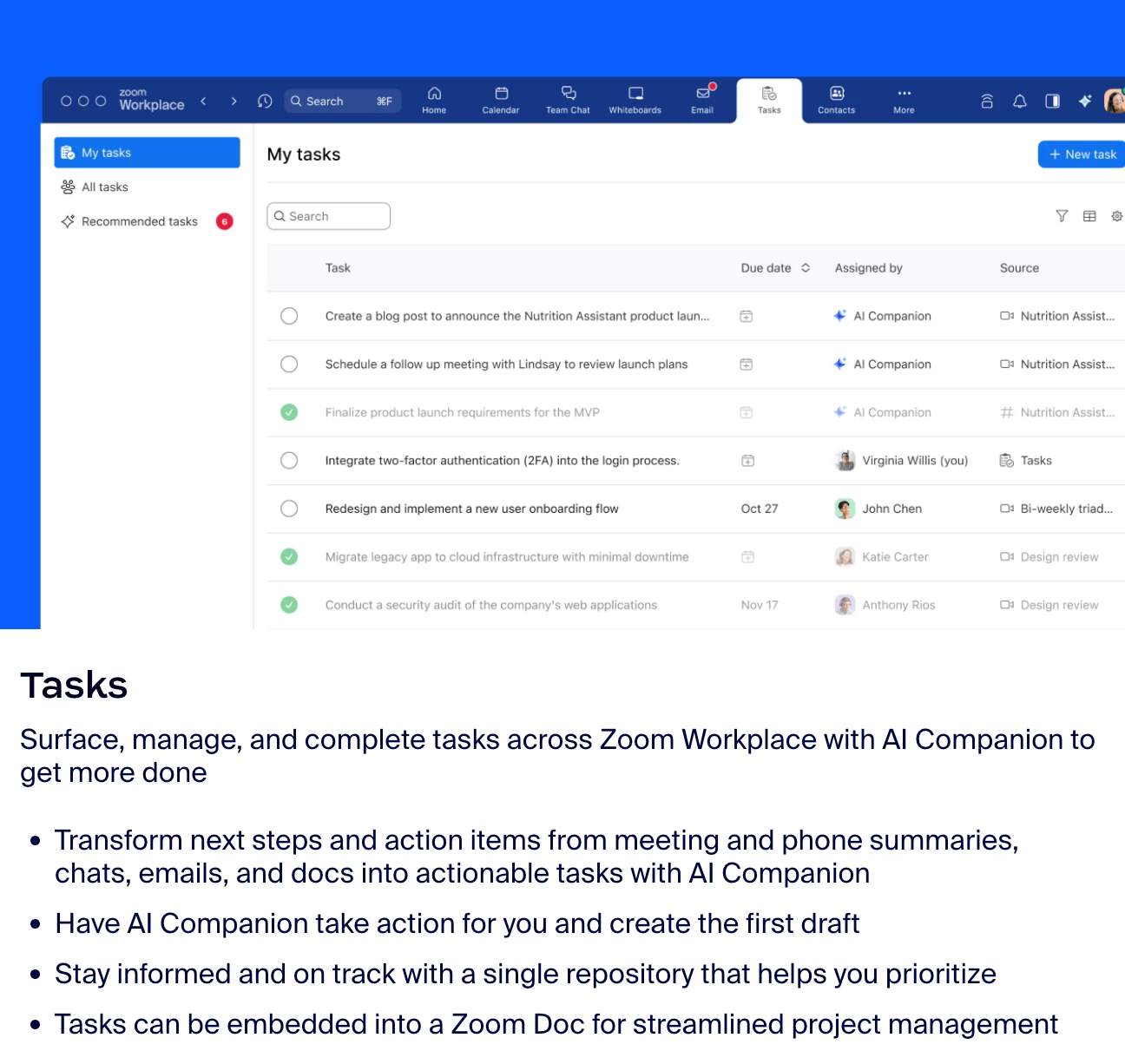 Zoom Task bridges the gap between conversation and action - turning ideas into outcomes without switching platforms.