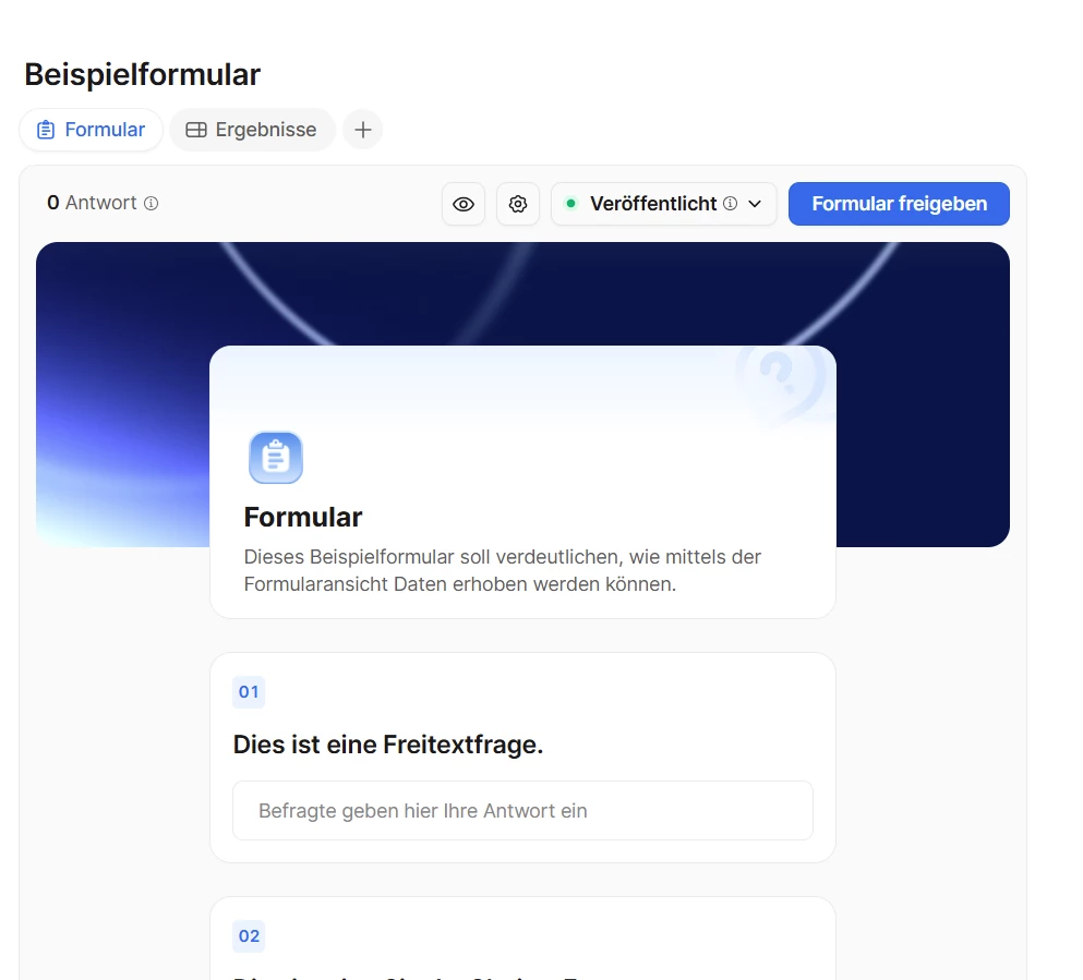 Edit: I got it. Forms need a separate Link to share with users, they are apparently not intended to be integrated in usable form in a document. I improvised by embedding the correct link in my document. I leave this here in case others are confused. Also, maybe it would be an idea to simplify using forms in documents, the same way it is done with whiteboards?