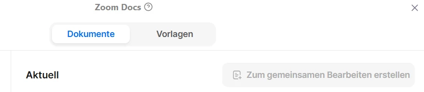 I can only open existing documents, which is weird, because I cannot create new documents outside of a meeting, because the option is disabled. And now I also cannot create new documents within a meeting. (ZOOM Docs is enabled in Meetings or I wouldn't even have the button "Documents" available, to get to this point.)
