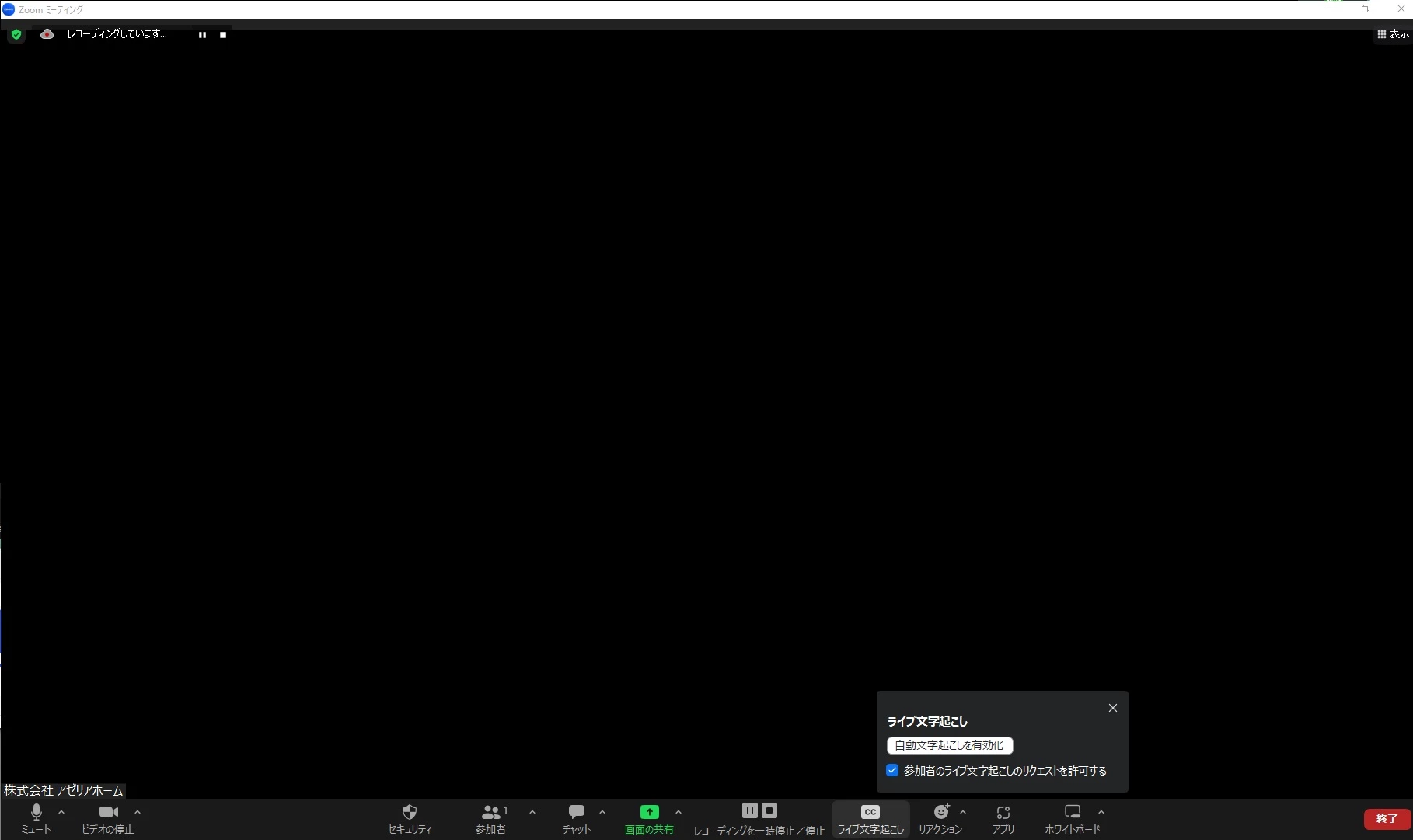 にしても、会議を開始すると『字幕』のアイコンが下に出てきません。『文字起こし』のアイコンが出てきます。