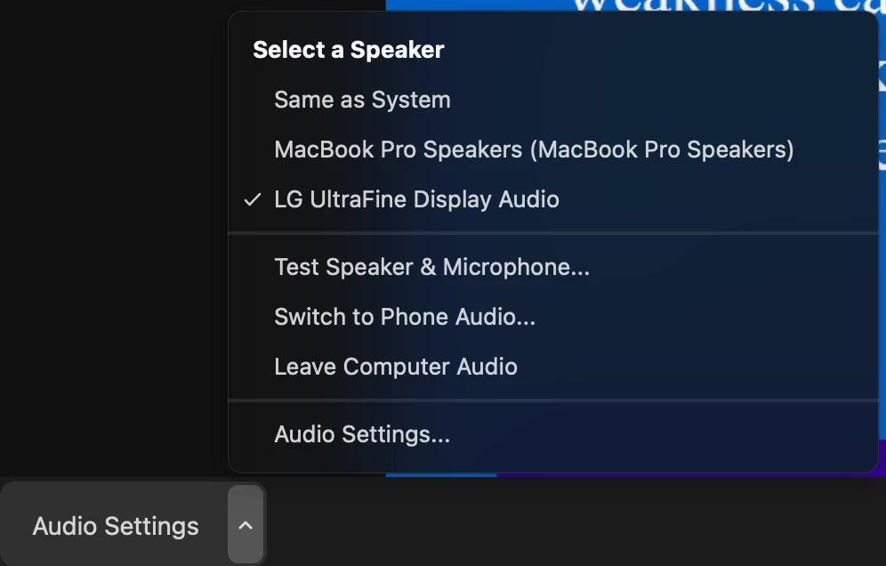 I am currently in a Zoom Conference and only have the option for Audio Settings in the lower left corner. I have no option to mute and have no idea if I am muted automatically. In standard Zoom meetings I have the option to Mute/Unmute. Can someone help?