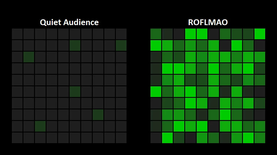 Mid-pandemic, my wife and attended a charity comedy show. The presenters & performers all had video on, but the rest of us were turned off. That made it rough for the comedians, as they couldn't tell whether their jokes were landing.