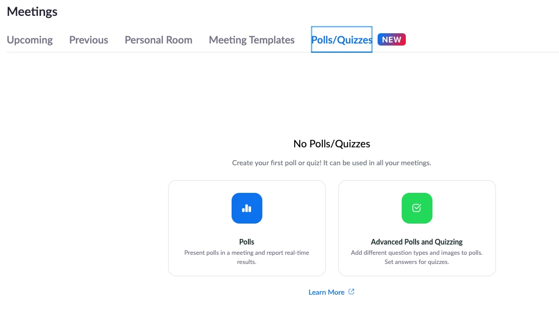 My administrator turned on the option "Allow users to manage saved polls and quizzes from "meetings" but I still don't see this option in my account when I check in In Meeting (Basic) - Polls/Quizzes. I only have 2 options, this 3rd option is missing. Do we know why?