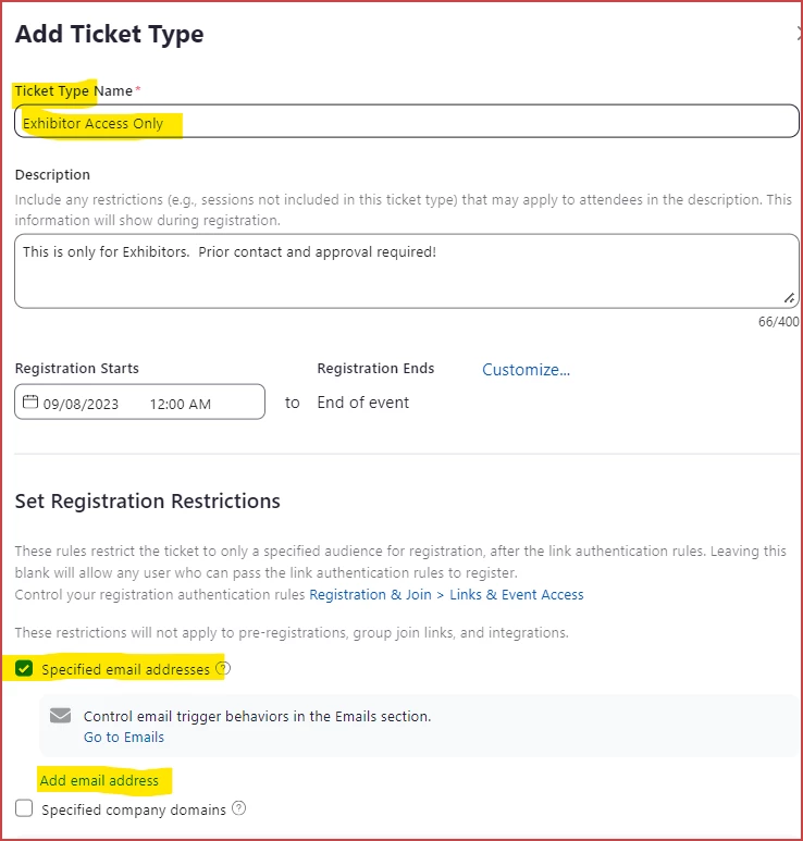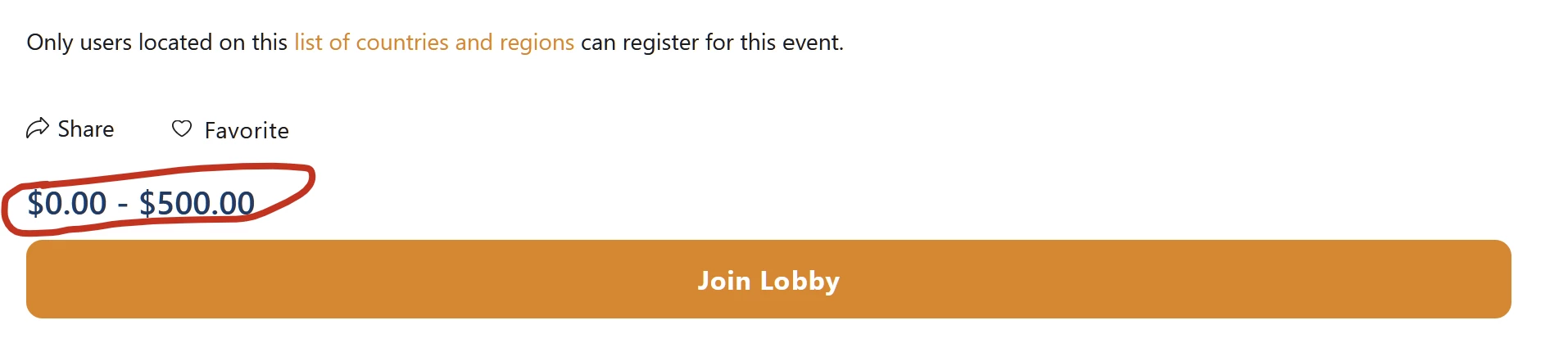 I am wondering if it is possible to not display the price range for an event. We have a few very specific prices/tickets that are higher, but do not really apply to 99% of the people. These higher prices are for the exhibitors, but we worry that regular attendees may be scared away without even clicking the button to see the various ticket prices. See image below.