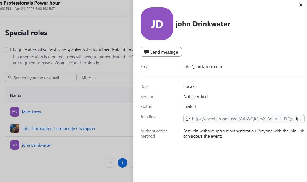 They all have special role of speaker. They’ve all been added as “speaker.”