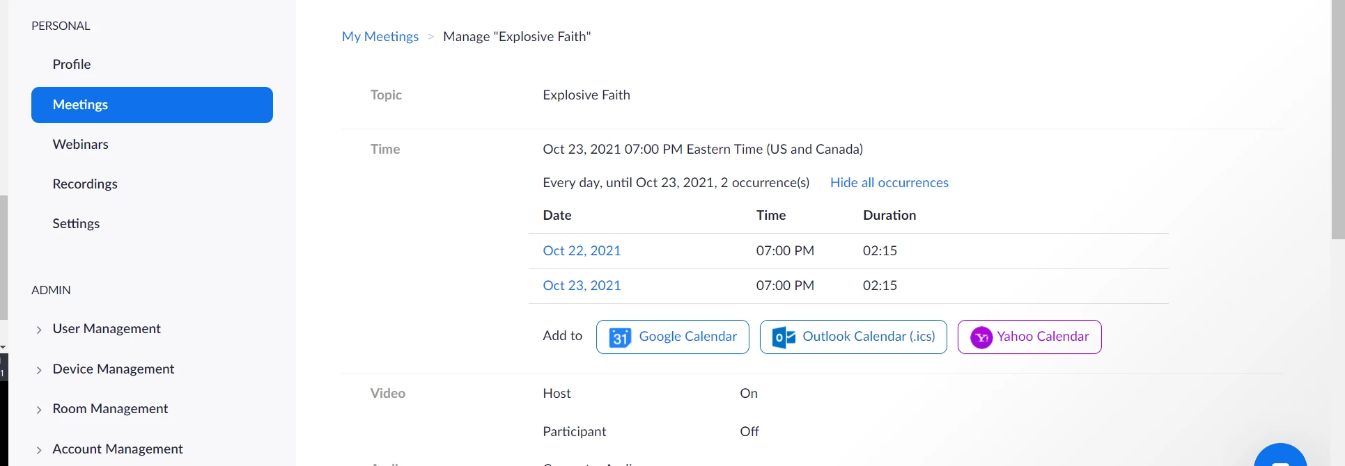 How do have a two-day event that is not a Series because thy start at different times. First day is a evening session, next day starts mid-morning. This is one event, like a two-day conference.