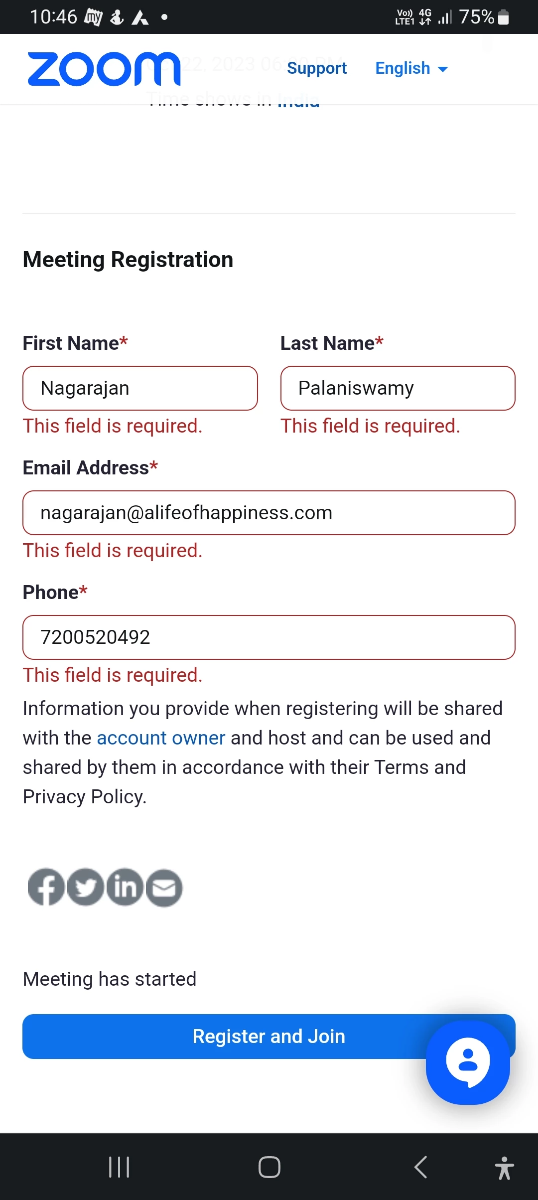 Nnags9723NewcomerForum|Forum|2 years agoOctober 21, 2023QuestionUnable to register for any event on mobileForum|Forum|2 years agoOctober 21, 20230 replies2 viewsHi, For any event when I try to register it says Firat Name, Last Name, Email and Phone are required fields even after I have enetered the details. Because of this I am not able to register for any event. I am using Samsung M33. RegardsNagsRegistration page