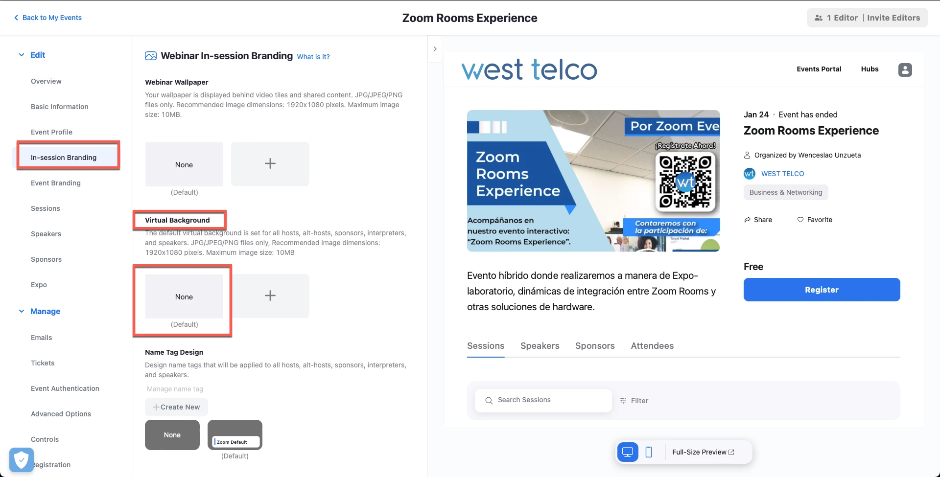I added a virtual background for a panelist and I don't like it. How do I delete it?