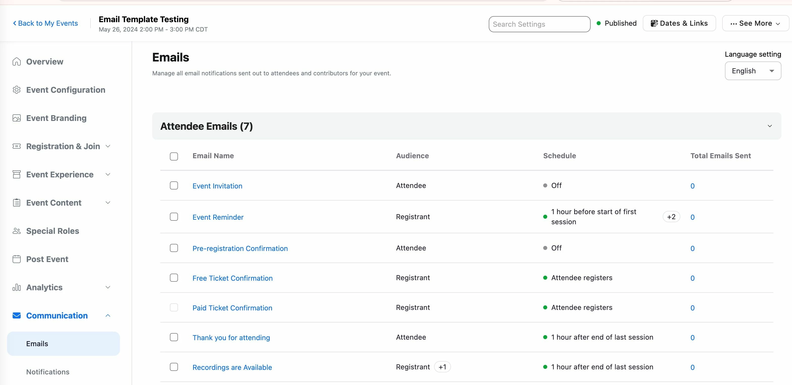 I am preparing a multiple-day conference with Zoom Events (pay per attendee with a Business license).