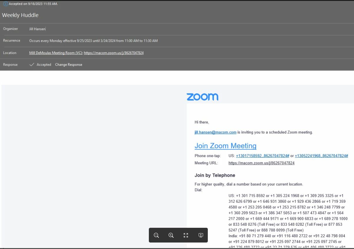 I have a user who created a recurring Zoom meeting for every Monday from 11-11:30am and it does not show up in the Calendar for the room that accepted it. I was able to create the meeting with no issues. I went over to watch and see and the user created it correctly. I can even see the recurring meeting in the user's settings for Meetings.