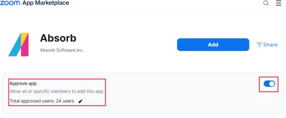 Despite the Aborb app being approved by admin (me), the app is not available to users in desktop client, nor does the app appear in the added apps list or apps on account list.