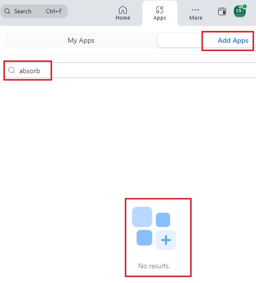 -Further, when the Absob app is searched for using the “add apps” feature in the client, no results are seen. (See provided screen capture)