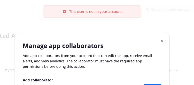 I have a marketplace zoom app that we want to start testing but I cannot seem to add any collaborators on the app.