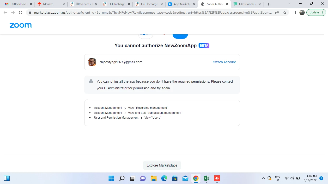 Moreover,it is saying to contact your IT administrator  and i have no idea of who it is.