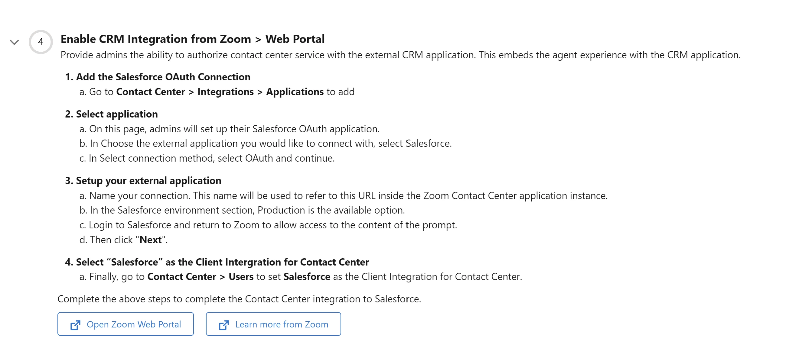 Hi, I was able to follow steps 1-3 on the Zoom for Salesforce Lightning but am having trouble with step 4. When I login to Zoom, I do not see the option "Contact Center."