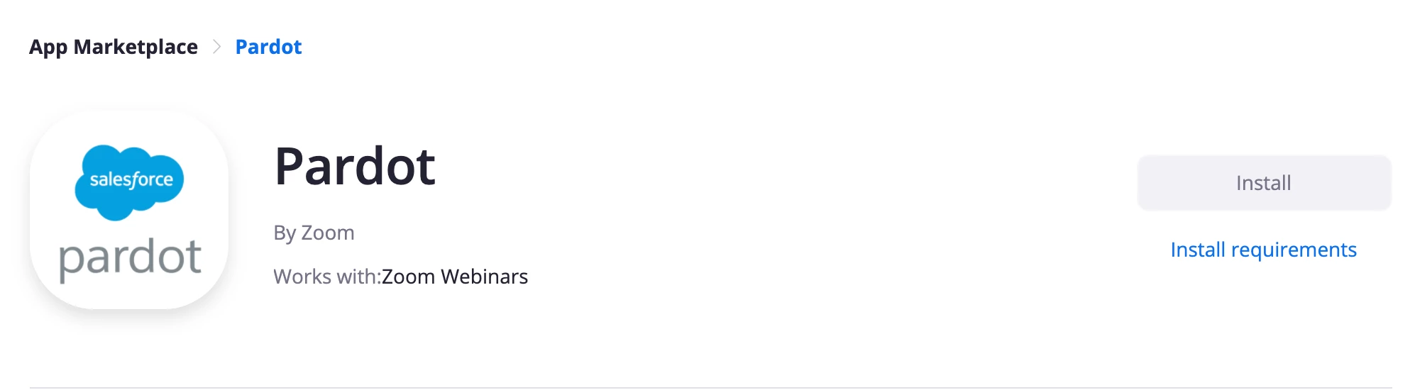 Zoom Marketplaceというサイトから「ZoomforPardot」Salesforceパッケージをインストールしました。