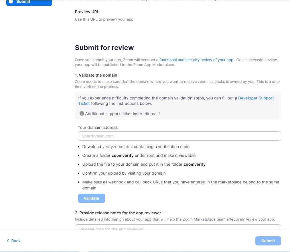 Ppremkumar_123NewcomerForum|Forum|2 years agoAugust 8, 2023Questionzoom production form facing problemForum|Forum|2 years agoAugust 8, 20230 replies1 viewhello my zoom app type is OAuth and we are facing problem in form App CredentialsProduction side, the form is not successfully filled. Please help
