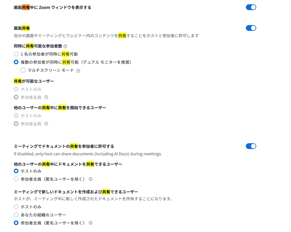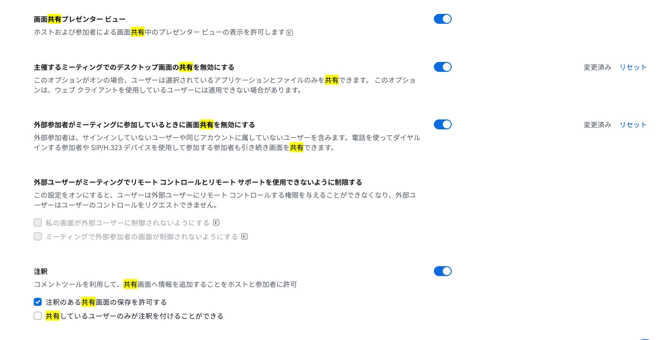 同じように設定しているのに、突然自分のアカウントだけ画面共有ができなくなった