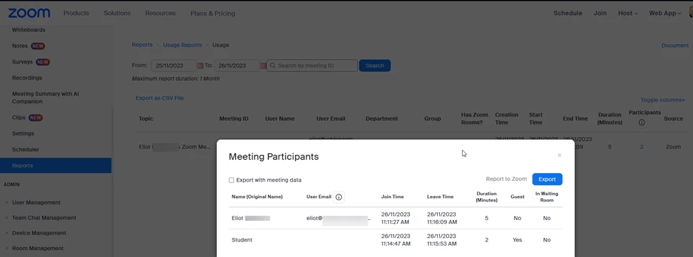 If I Join a Zoom meeting without signing in to my account, and after joining rename my name in a specific way, if the meeting host downloads the participation list, will my name show in that list? I joined Zoom without signing in, but renamed my name with my student ID. My faculty saying he will download the Zoom meeting participation list and run a code to detect student ID to give attendance, will my student ID show as i didn't join the meeting by signing in with my Zoom account?