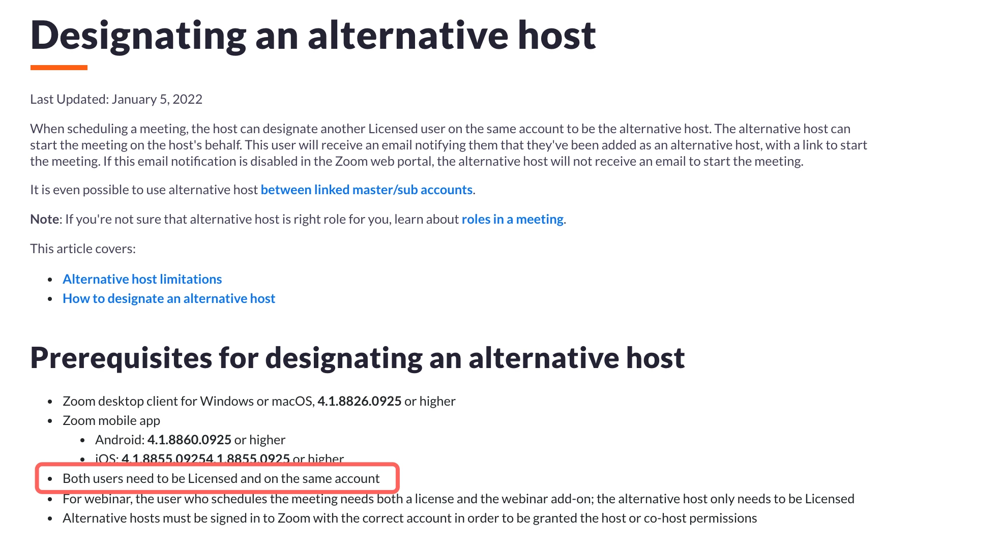 How do I add a cohost permanently? I tried entering his email address in the edit area of the particular meeting. Way at the bottom, under options, it says "alternative hosts" When I entered the person's email address used on his zoom account, I get a message saying that email address could not be found.