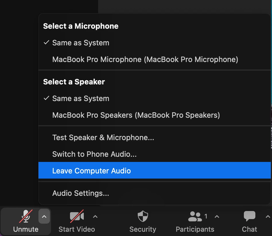 If I'm attending two meeting simultaneously, is there a way to lower or mute a specific meeting's audio? If I want to speak in one meeting or just want to focus on what's being said in that meeting, I don't want to audio from the other meeting coming through.