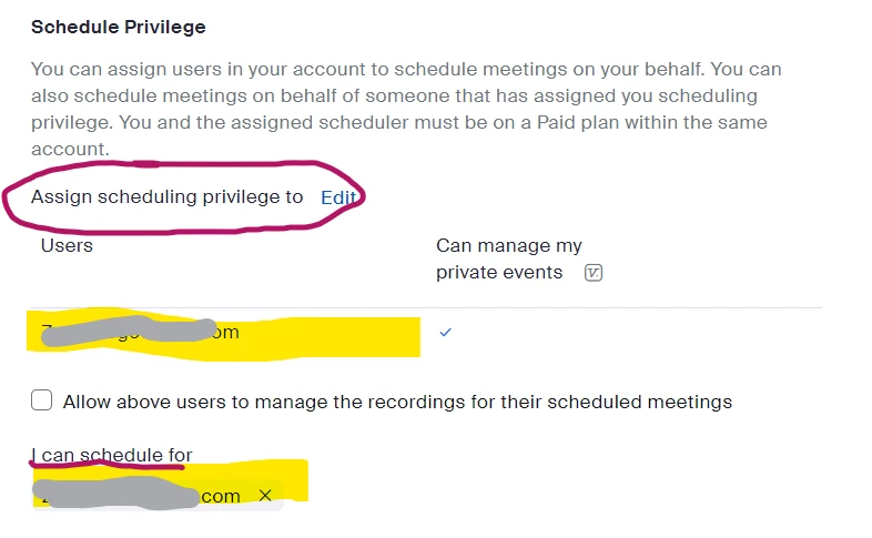 As the owner account, I have granted a few of the admin accounts rights to schedule meetings for me. I see them listed in the Settings>Meetings>Other>Scheduling Privileges section. However, when those accounts schedule a meeting, they don't see my account as an option to choose from. Are admins not allowed to schedule meetings for the owner?
