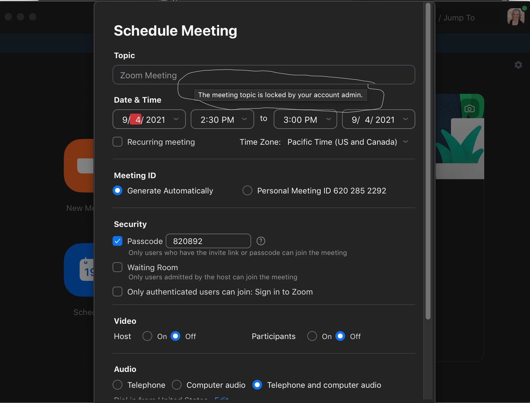 AAnaCNewcomerForum|Forum|4 years agoSeptember 4, 2021QuestionAfter upgrading today, I am now unable to choose a meeting topicForum|Forum|4 years agoSeptember 4, 20211 reply0 viewsIt says "locked by admin," and I am the admin!Need to schedule a meeting NOW. Can anyone help?TIA