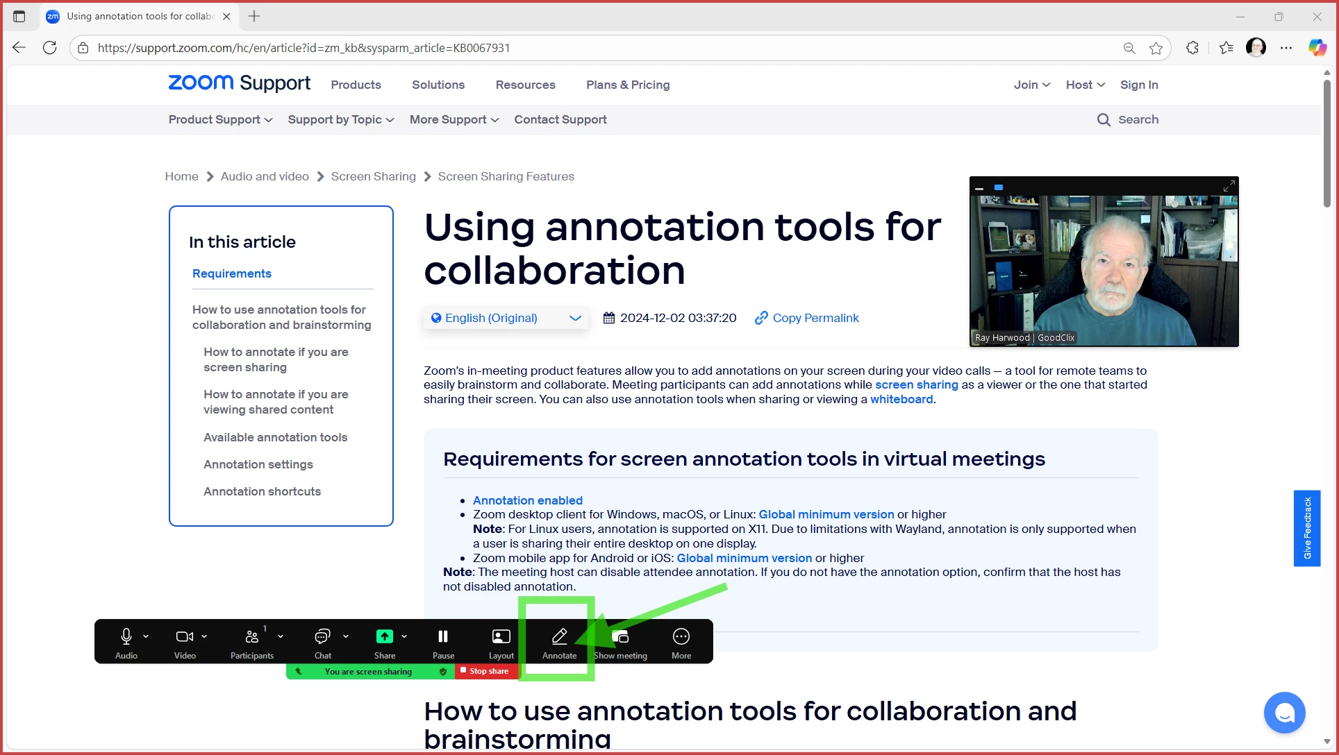 I am using Zoom for teaching students in different states. I have multiple computers with Zoom and some have the Annotation screen. Some do not. Is there a way to "upload " the annotation screen to a computer from Zoom? The whiteboard isn't always a useful tool for my students with low vision.