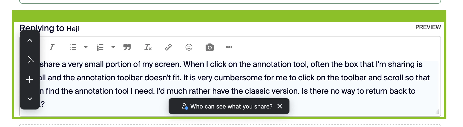 is it possible to get earlier version of annotation tool? The newest version in vertical position is so not useful for me and it takes me much more time and nerves to do what I want to do.